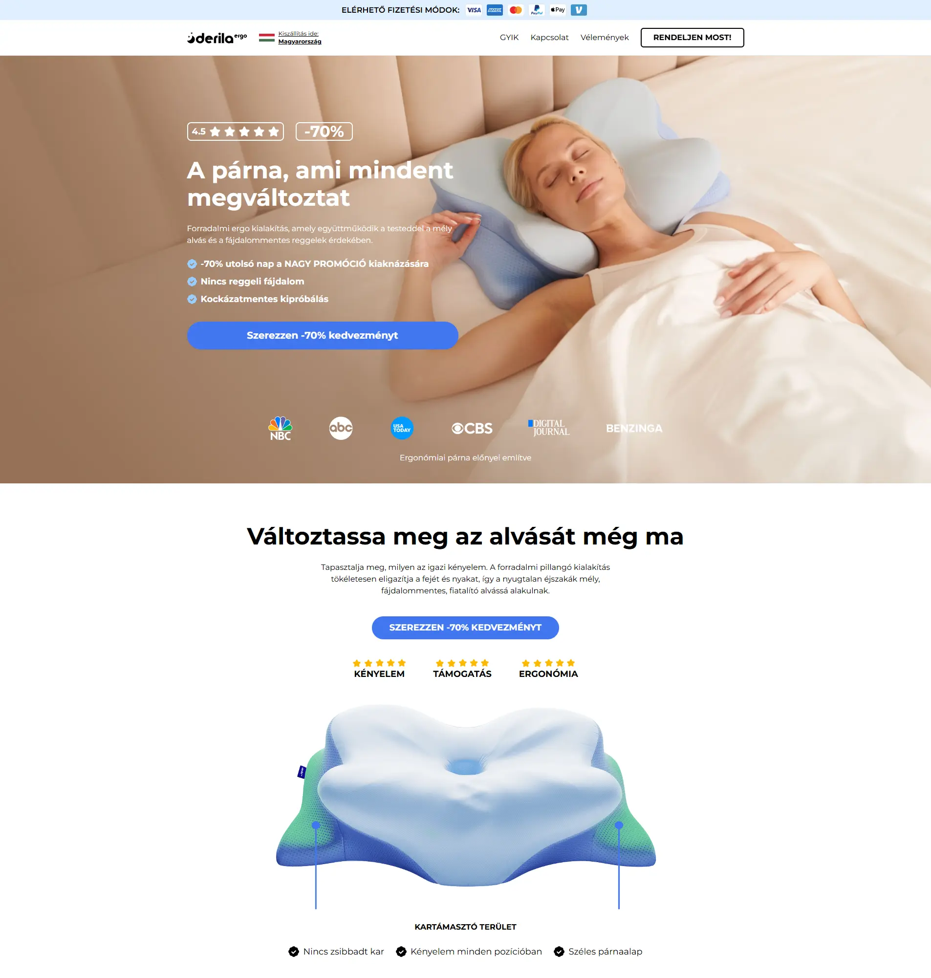 A Derila Ergo nem csupán egy párna, hanem egy forradalmi alvásmegoldás, amelyet kifejezetten a nyak, a váll és a gerinc optimális alátámasztására terveztek. A különleges „pillangó” kialakítás és a prémium memóriahab ötvözete segít megszüntetni a reggeli zsibbadást és fájdalmat, miközben javítja a légutak átjárhatóságát. Ez az összefoglaló hiteles információkat nyújt a Derila Ergo technológiájáról, a vásárlási feltételekről és a magyarországi elérhetőségről.